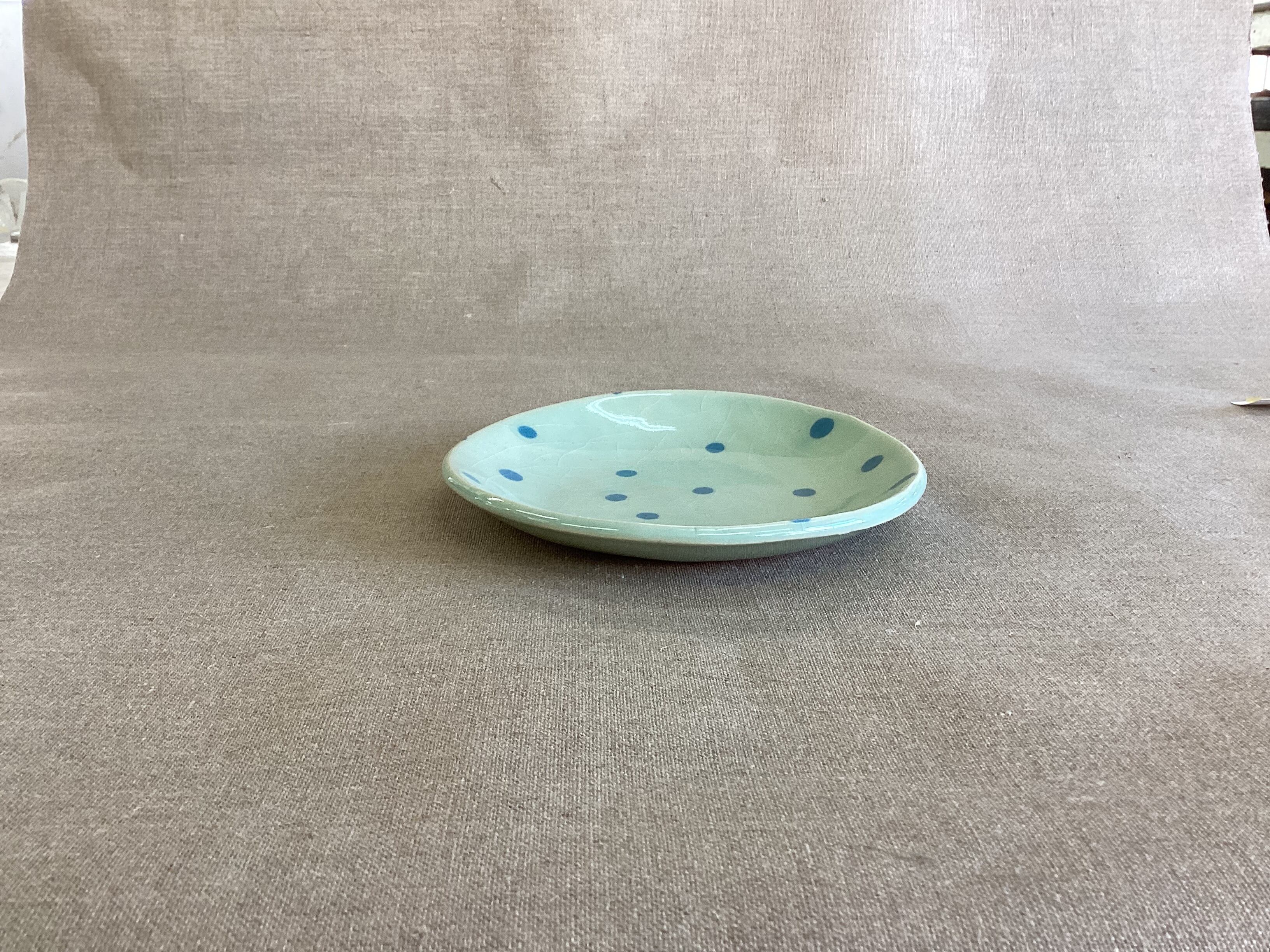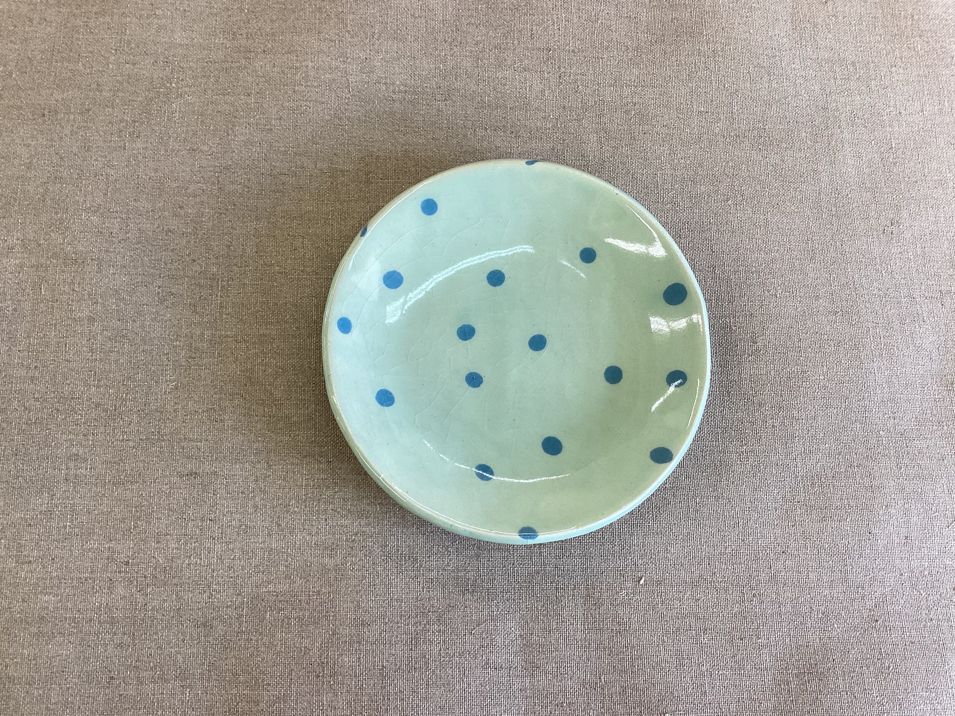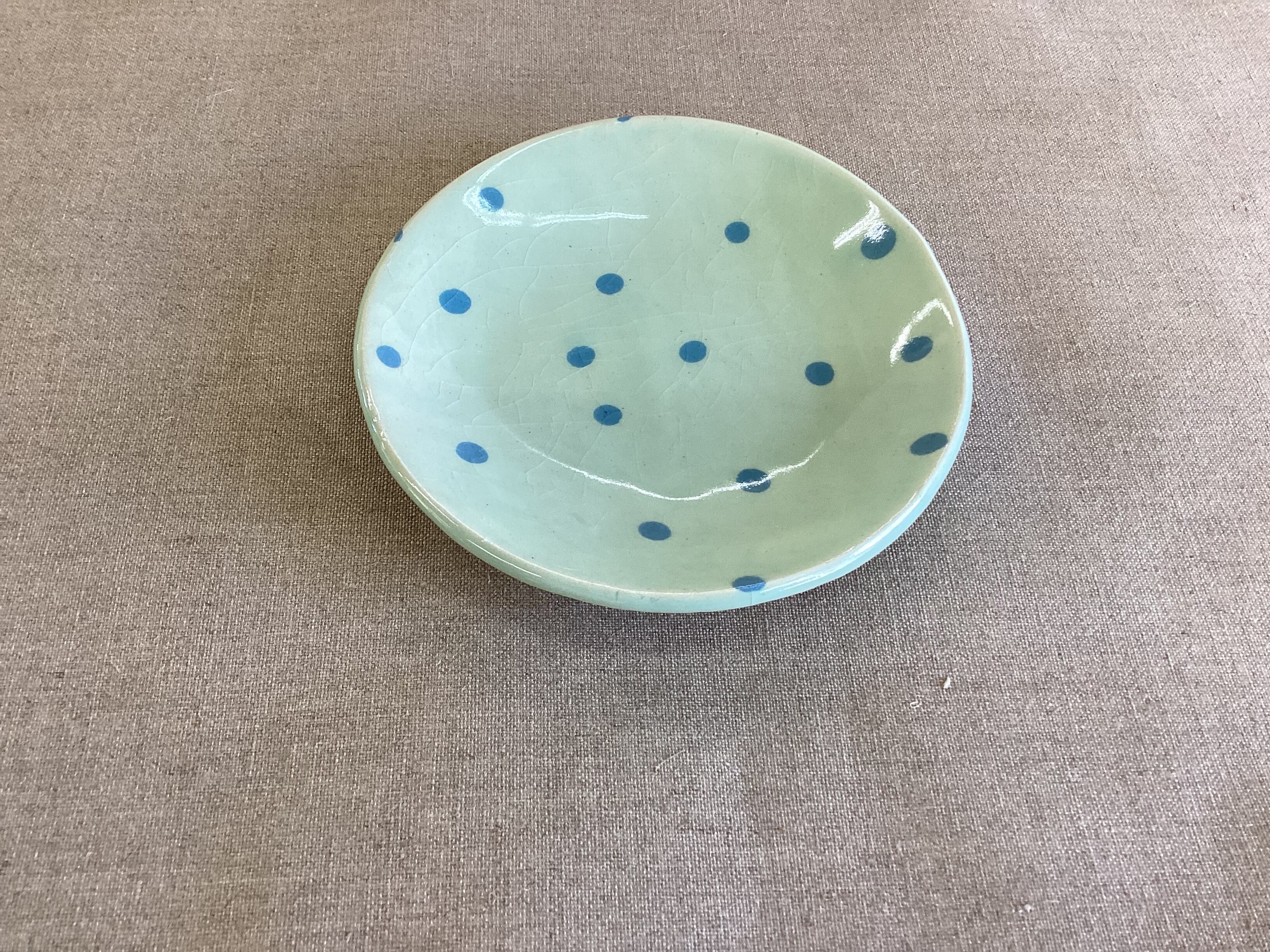 (16) 中皿 (水玉) (水色系)